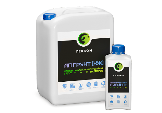 Геккон АП Грунт (КЖ) - Полиуретановое двухкомпонентное покрытие на основе комплекса модифицированных форполимеров отверждаемое влагой воздуха с высоким сухим остатком, большим содержанием железноокисных пигментов, специальных антикоррозионных добавок, и наполнителей. Состав обеспечивает эффективную антикоррозионную защиту в составе системы покрытия. Используется в качестве антикоррозионного грунта при эксплуатации в различных условиях , в том числе в условиях окружающей атмосферы.
